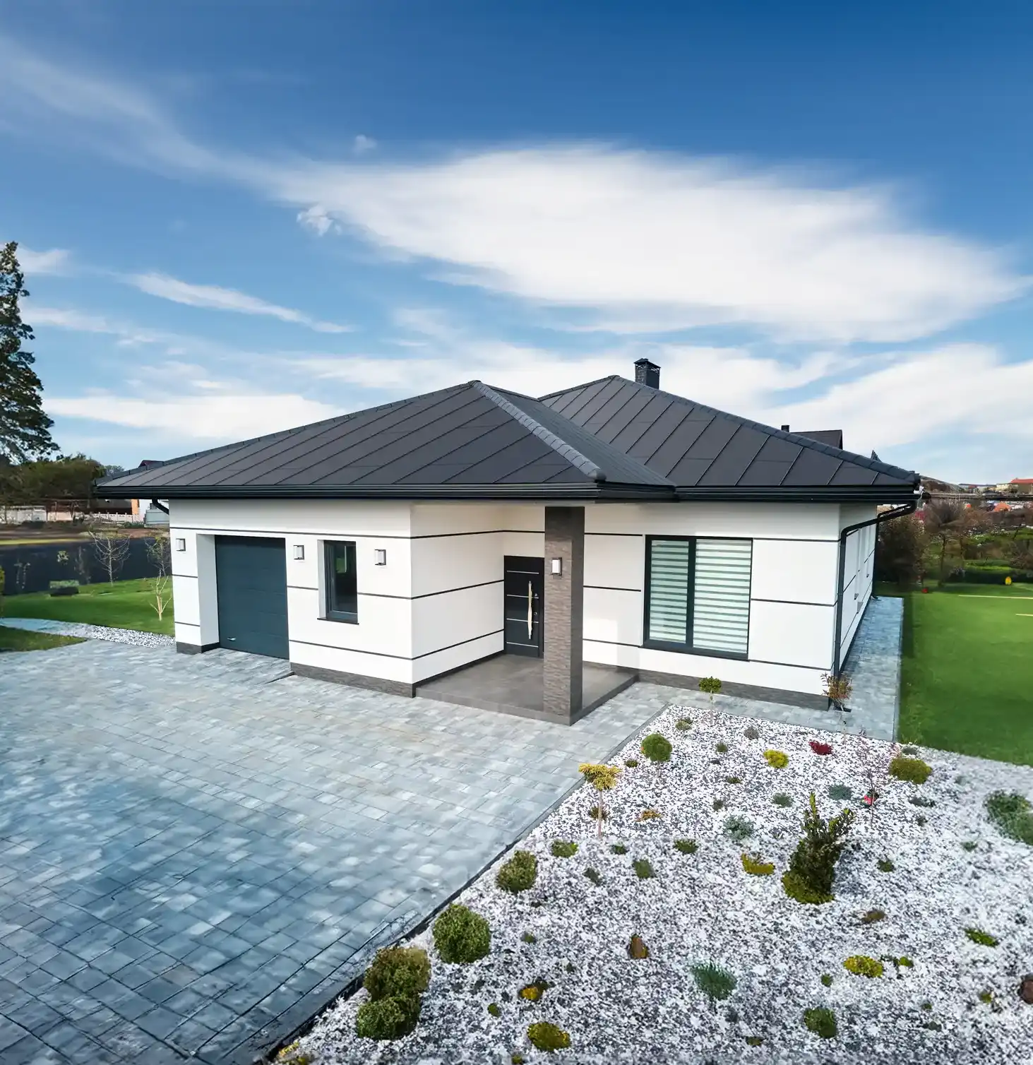 Il tetto costruito con la soluzione Fibrograf propone un’elevata tenuta all’acqua, impermeabilità e una copertura senza fissaggi a vista.