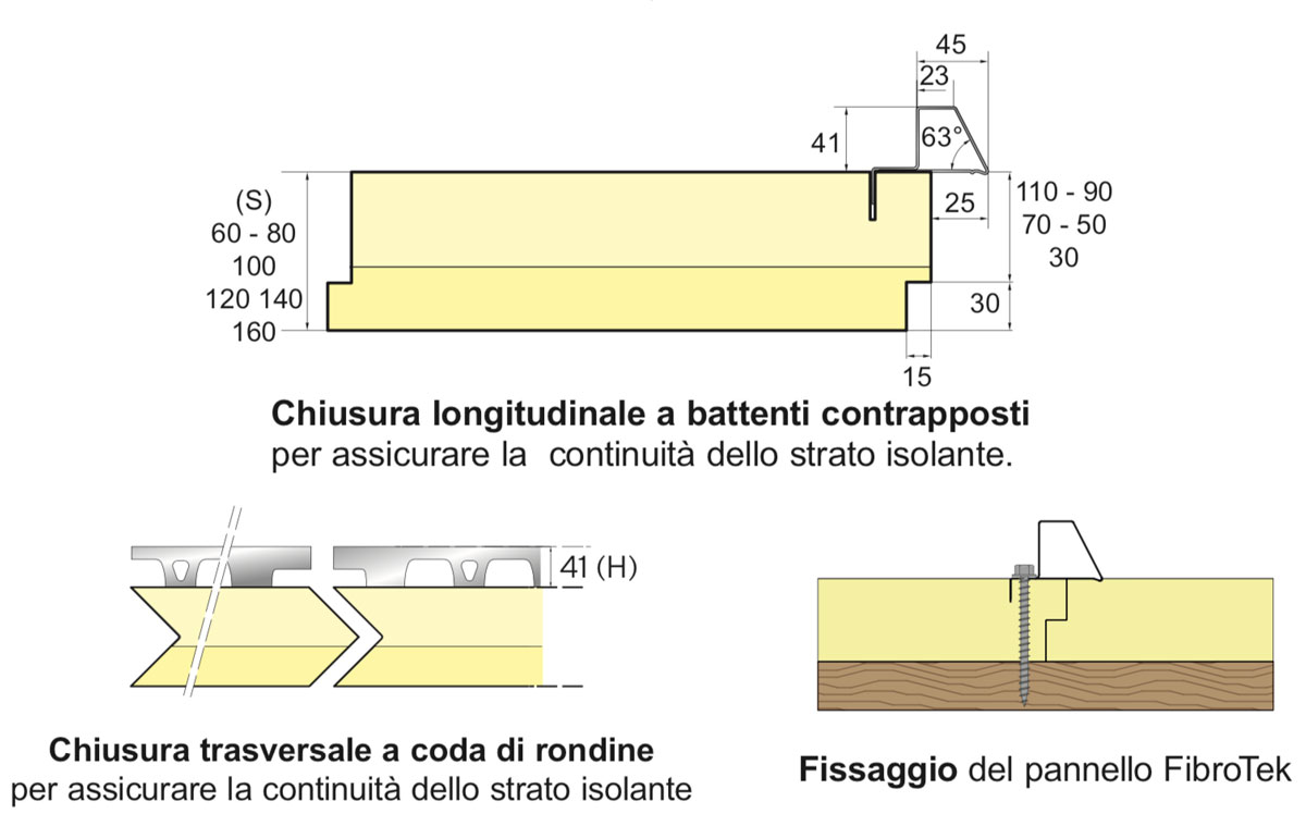 La posa dei pannelli FibroTek prevede un montaggio estremamente rapido, grazie alla profilatura del materiale a battenti contrapposti, che assicura precisione e sicurezza di incastro, e alla notevole leggerezza dei pannelli. Anche il fissaggio del manto di copertura risulta facilitato e sicuro, grazie allâampia base dâappoggio sul correntino metallico. Non eĚ da escludere, poi, il vantaggio economico: rispetto al passato, infatti, lâintegrazione di diverse stratigrafie in un unico pannello (dalla barriera al vapore ai correnti metallici) garantisce un notevole risparmio in fase di posa.