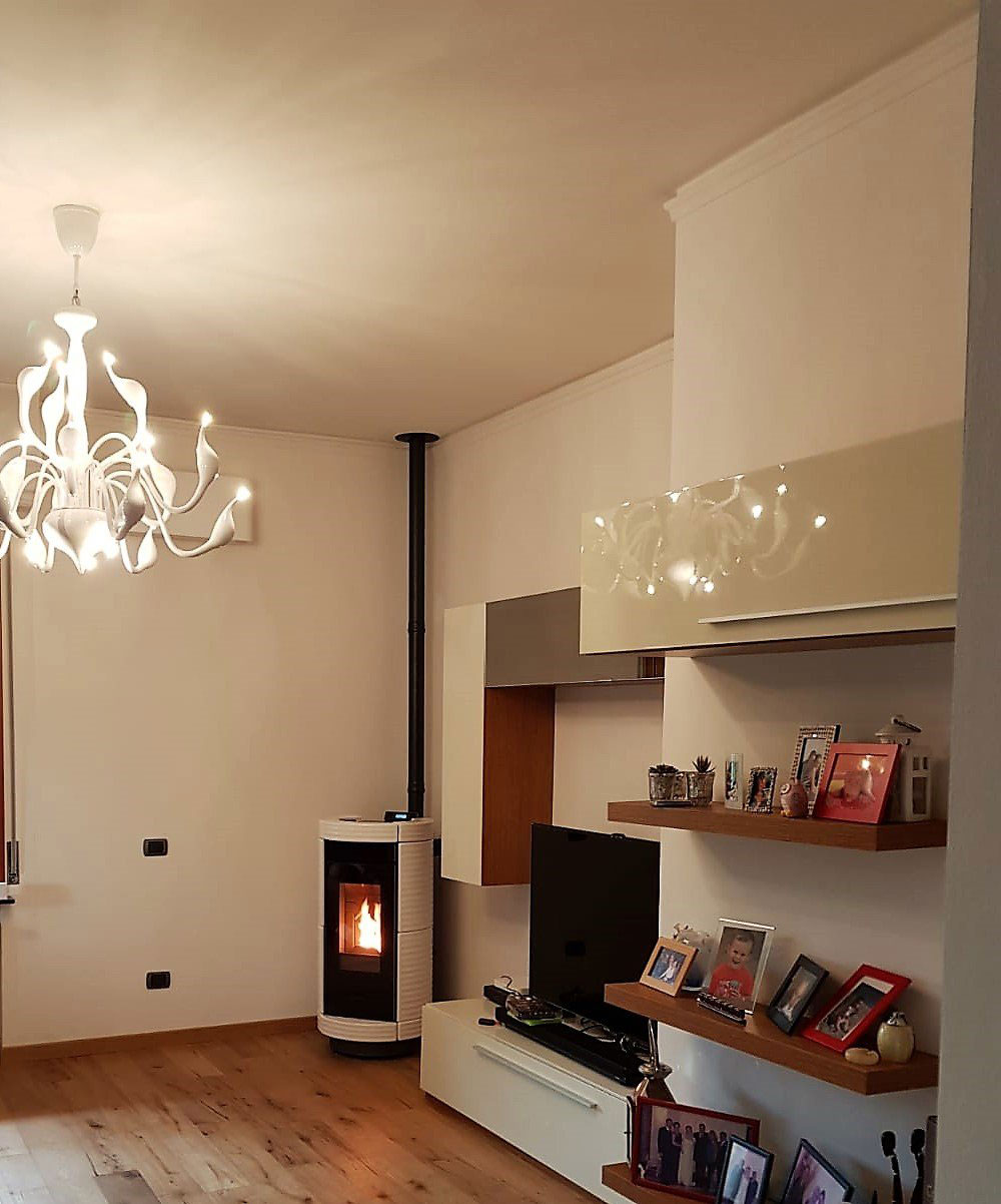 Componente che permette di inclinare l’asse verticale del camino, canna fumaria, condotto e del canale da fumo di 45°.