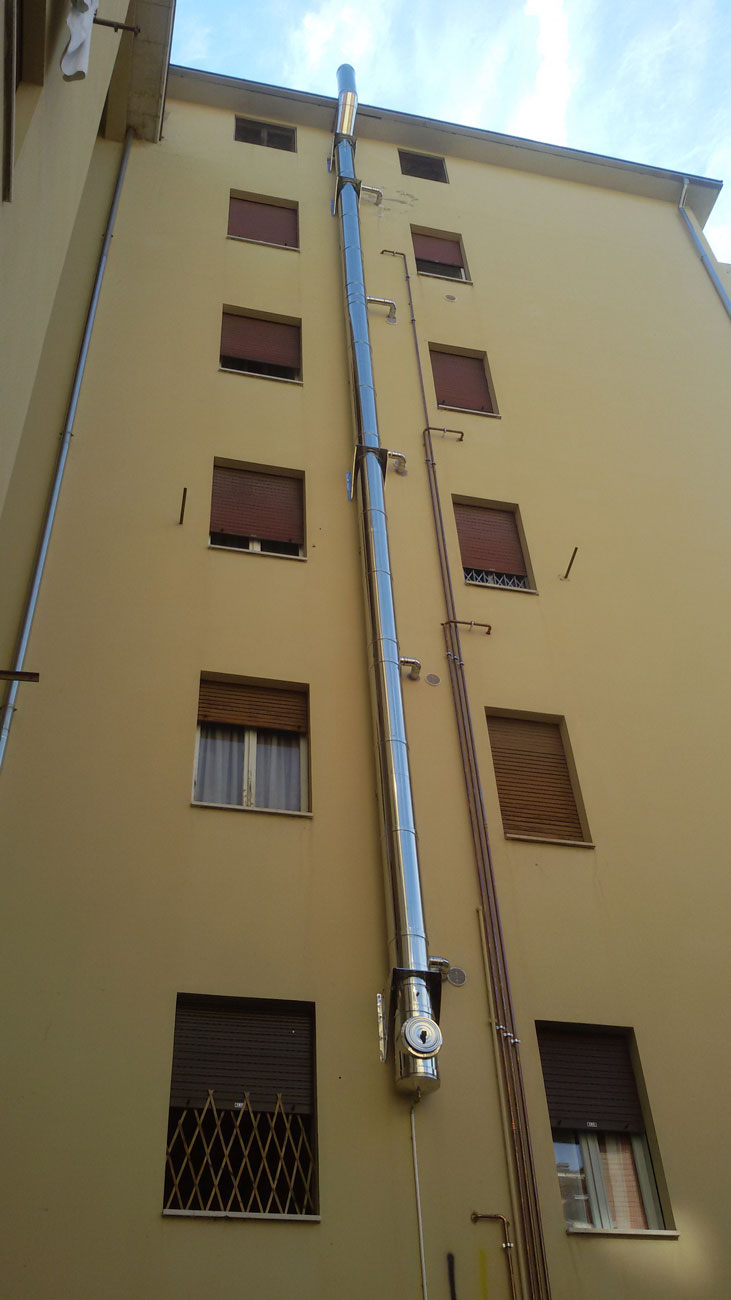 - Evitare ristagni di condensa o fuliggine che potrebbero essere causa di corrosione. Inoltre evitare tratti orizzontali e comunque installare gli elementi con la saldatura longitudinale rivolta verso lâalto (pendenza 3%).